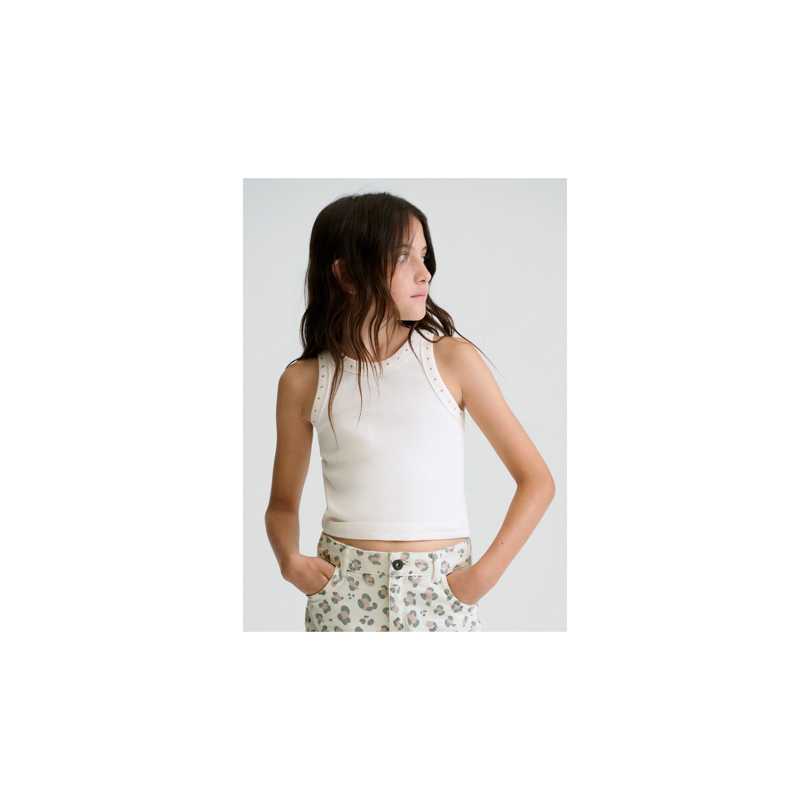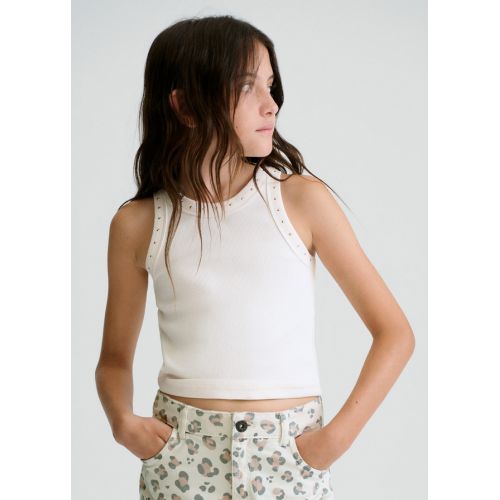 Білий топ із ребристого трикотажу для дівчинки